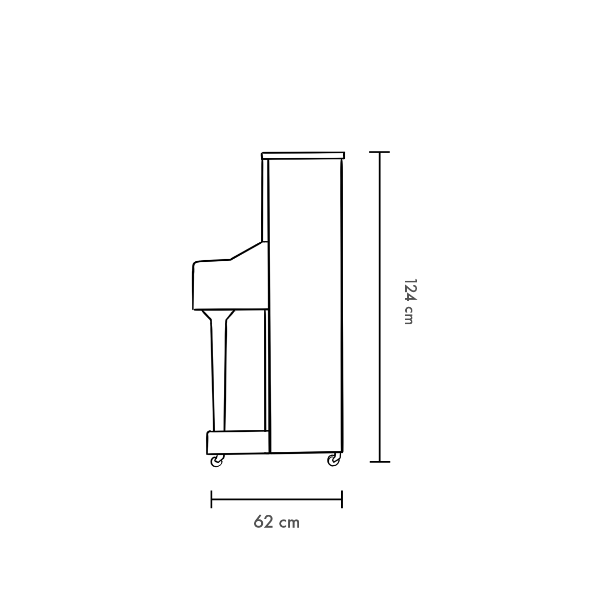 Un clavier de la fameuse marque Kluge, composé de touches blanches en sapin, de touches noires en ébène et de capsules en hêtre rouge répond à des normes d’équilibre très élevées. Ce modèle assure une répétition rapide mais permet également d’aborder la nuance extrême avec une facilité déconcertante.