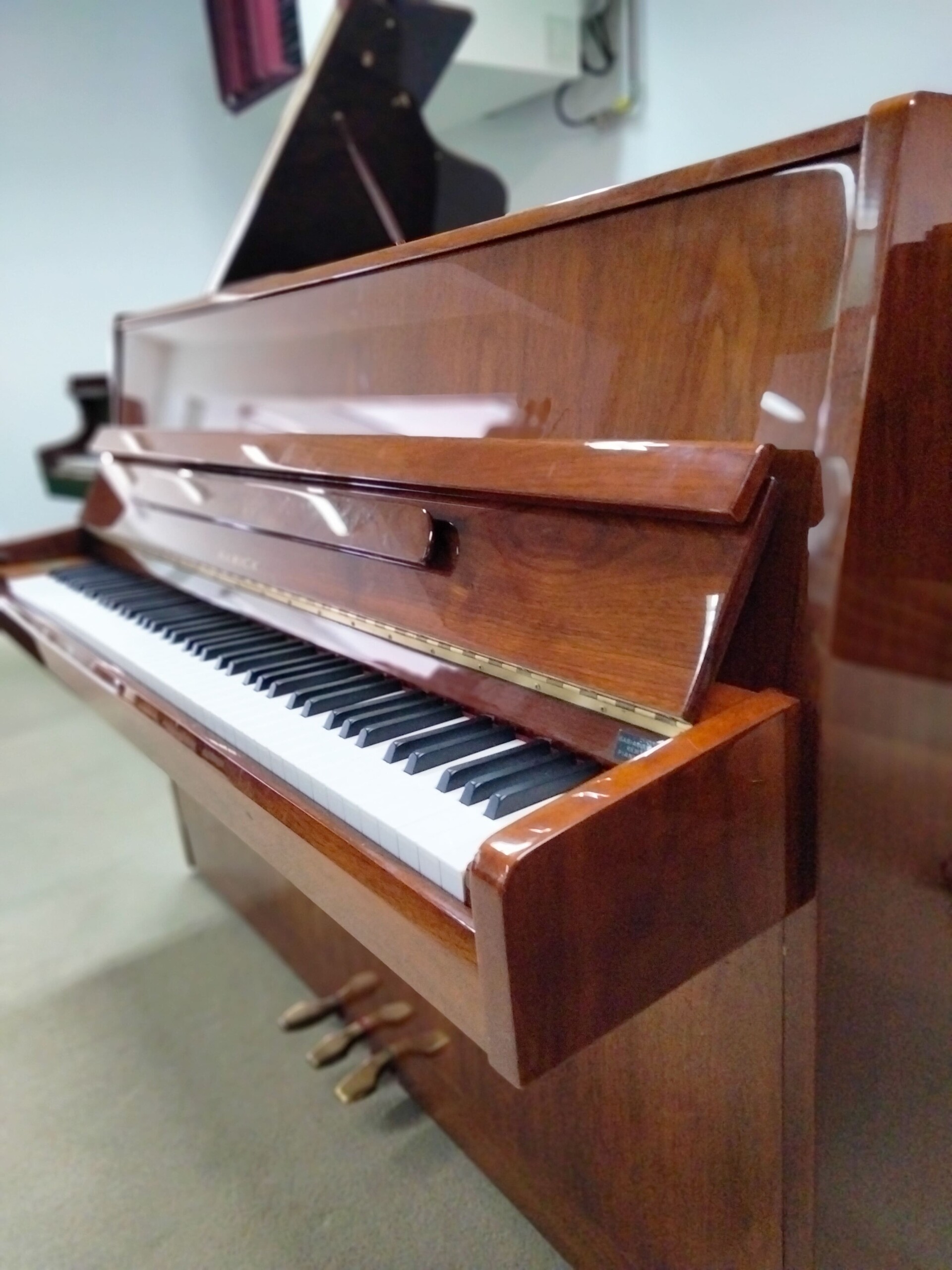 D’une hauteur d’1.08 m, il s’agit d’un très joli piano de studio, fabriqué par l’un des plus grands fabricants coréens. Les feutres de marteau sont allemands de haute qualité. Il est monté en cordes Roslau.